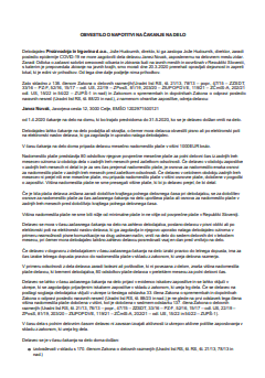 Opis in uporaba dokumenta: Če delodajalec začasno, ne more zagotavljati dela delavcem, lahko z namenom ohranitve zaposlitve pisno napoti delavca na čakanje na delo doma.